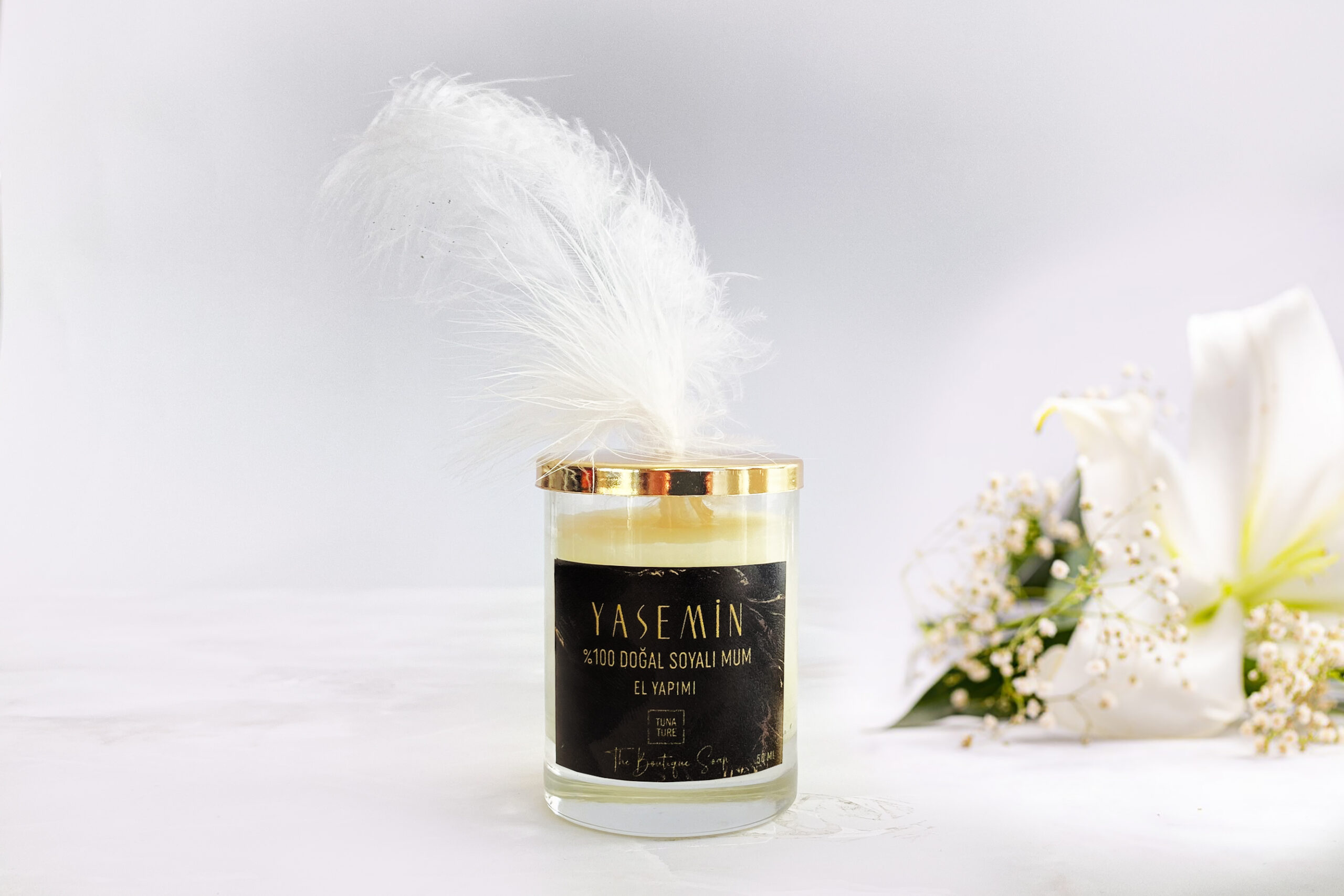 İçerik; Soya Mumu, Yasemin Uçucu Yağı % 100 Pamuk fitili kullanılmıştır.